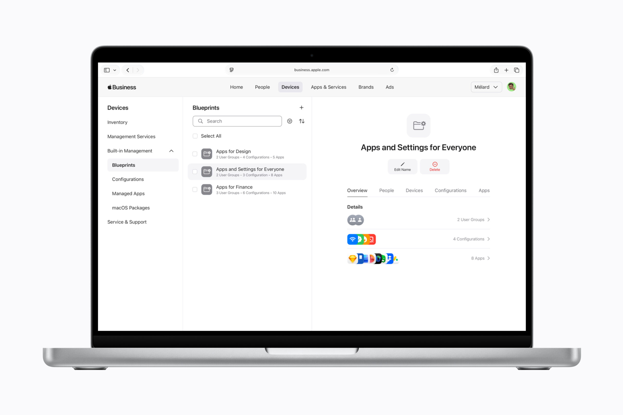 Uno de los ejes centrales de Apple Business será la administración integrada de dispositivos móviles, también conocida como MDM. La compañía indicó que las empresas podrán ver y configurar desde una sola interfaz los equipos Apple de una organización, sus ajustes de seguridad, las apps y los grupos de empleados.